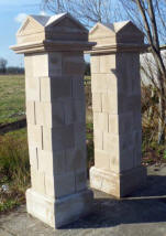 SOLD Pair of Gate piers in French Limestone overall height 2.5 high x 500mm at base