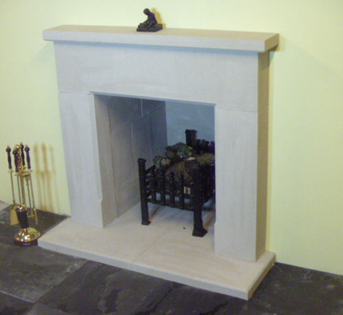 SOLD Our new Contemporary Portland stone finish surround, complete with inset hearth and inset block work