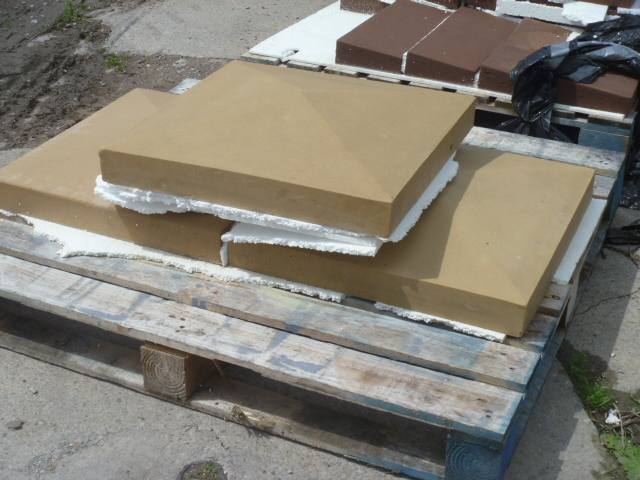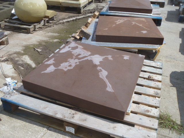 3no GP36BP pyramid pier caps in Red sandstone at 920mm x 920mm x 200mm, less than a third of the normal cost at just £55.00 each + vat slight seconds