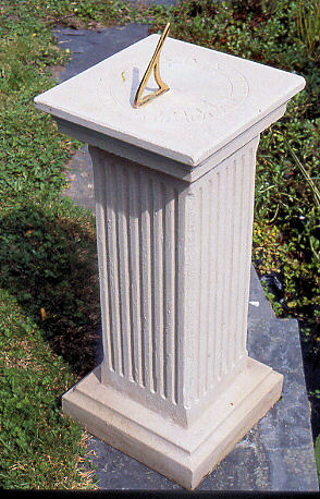 A Georgian style sundial and bird bath with fluted shaft, shown here in our Portland stone finish  the numerals are engraved into the surface of the Sundial top with the brass gnomon fitted.