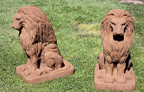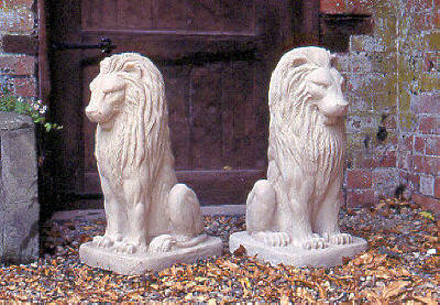 The small sentinel lions are shown here in a Gritstone finish, developed as an alternative to the larger sentinel lions, also used as gate pier ornaments.    Available in seven stone finishes and as either ornamentation or water spout, please specify on all orders.
